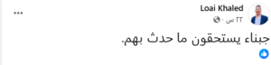 ولم يكتفِ أبو شاب بتبني رواية الاحتلال، بل وصل به الأمر إلى المجاهرة بالشماتة بشهداء القصف الإسرائيلي في غزة، حيث كتب في منشورات له أن الشهداء يستحقون القصف، في سقوط أخلاقي مدوٍّ يضعه في خندق واحد مع المجرمين في جيش الاحتلال الإسرائيلي.