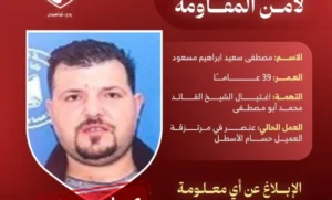 وأعلنت أجهزة أمن المقاومة اعتبار العميل/ مصطفى سعيد إبراهيم مسعود مطلوبًا أمنيًا، “ويتعهد أمن المقاومة بالوصول إليه وتنفيذ القصاص العادل، داعيًا شعبنا إلى الإبلاغ عن أي معلومة بشأنه”.