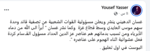 ونشر المدعو ياسر أبو السعيد سلسلة منشورات وصفها الناشطون بأنها شماتة صريحة في الشهداء والمصابين، وروّج من خلالها لميليشيا العميل المجرم شوقي أبو نصيرة.